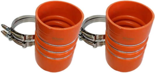 Pair of Silicone Orange Hump Hose for Charge Air & Clamps Set 4" ID x 6.2" Long H-55340H set